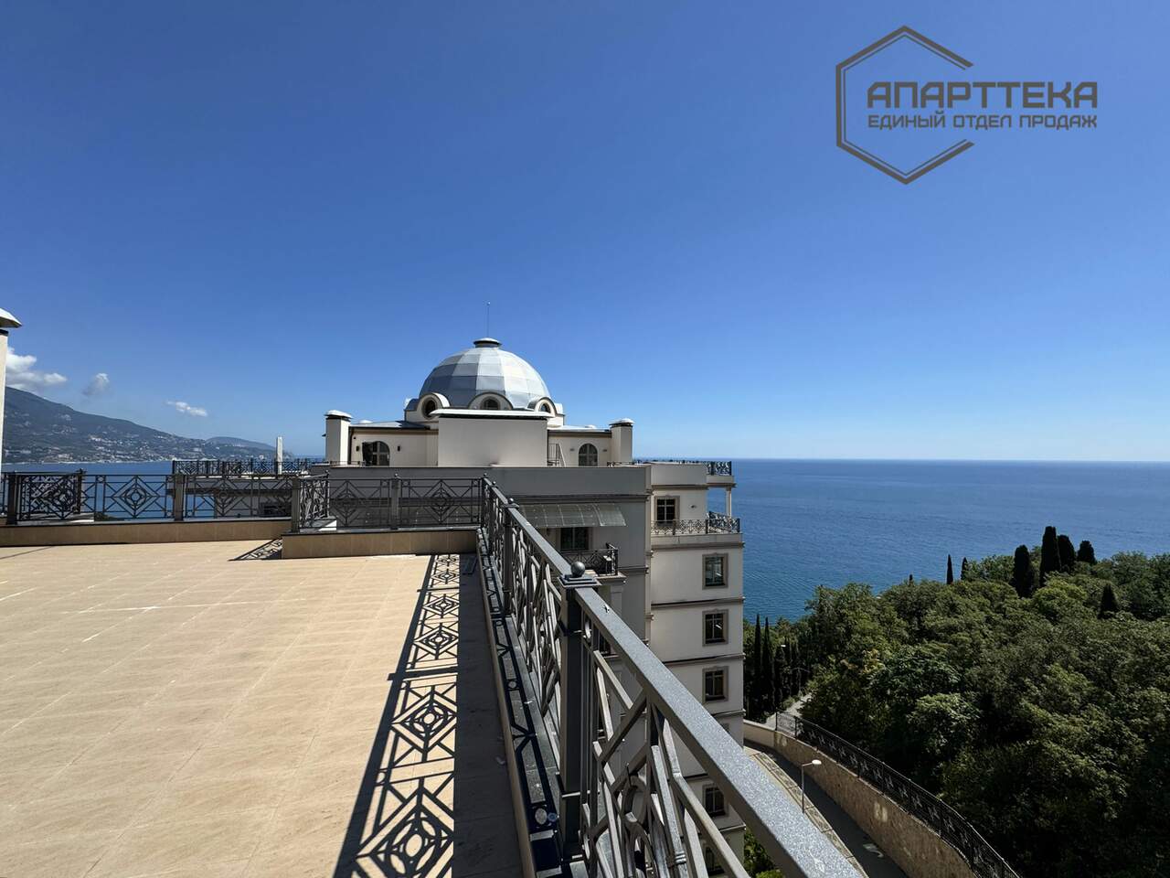 Вид 360 градусов на: открытое море, горы, хвойный лес, Ялту, Покровскую церковь. Самый большой апартамент в комплексе, обсуждаются индивидуальные условия приобретения.