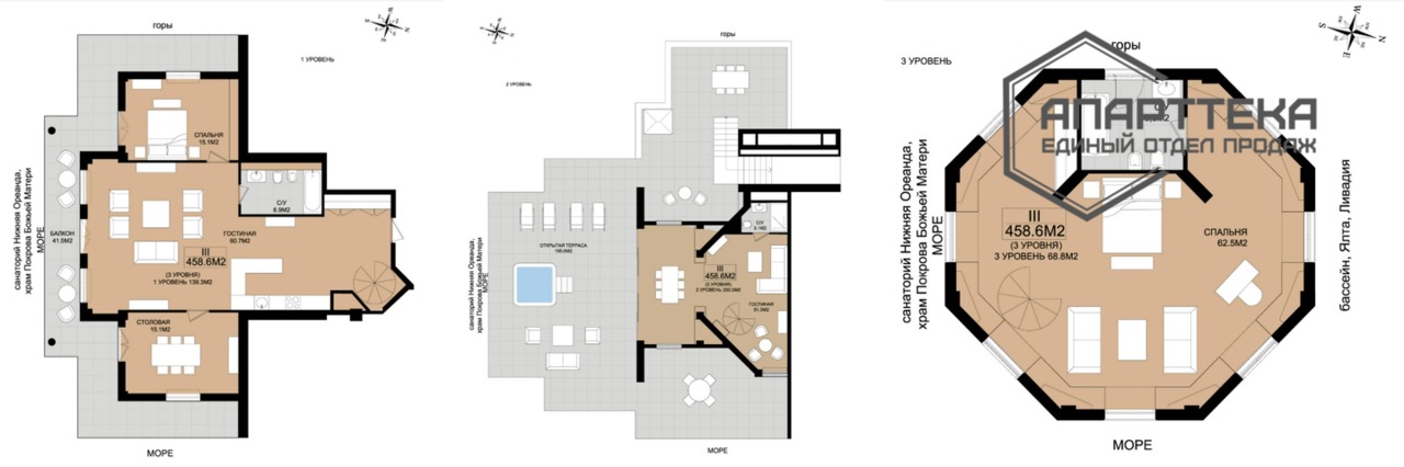Уникальный трехуровневый пентхаус в апарт-комплексе класса премиум. Площадь в объявлении указана только внутренних помещений, без дополнительной общей площади террасы и балкона 237,1 кв.м. Общая площадь всех помещений с террасой и балконом 458.6 кв.м.