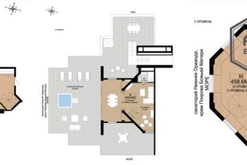 Второй уровень: гостинная (зона отдыха) 51.3 кв.м., сан узел, открытая терраса 195.6 кв.м. с открытым видом на море, горы и лес. (юго-восток).