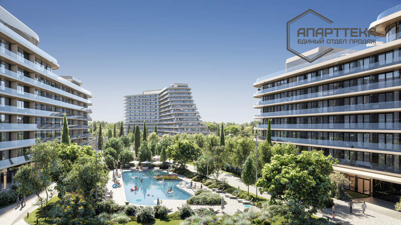 Проект бизнес-класса, самый масштабный в данной локации, проще сказать чего не будет на территории в 14 гектар, на которой из курортной недвижимости будет только 5 зданий, на остальной территории: медицинский центр, спа комплекс, бассейны, детские и спортивные площадки, парковая зона, коммерческая недвижимость, рестораны, магазины, аптеки. До песчаного пляжа 90 метров.
