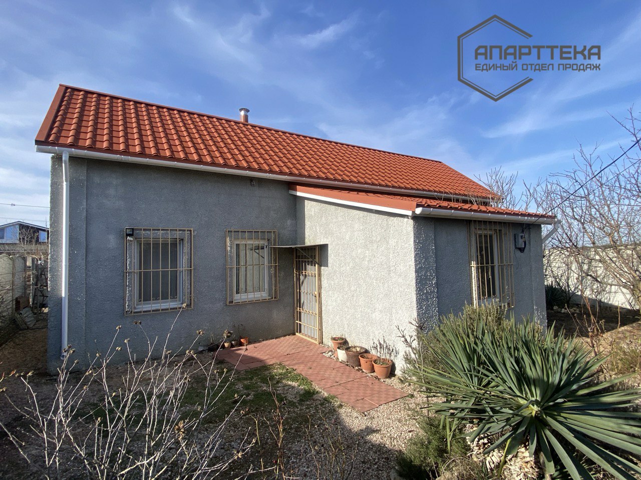 Дом построен из природного камня ракушечника, утеплен пенопластом, оштукатурен; крыша утеплена минеральной ватой, покрыта качественной металлочерепицей, смонтированы ливневые системы. Внешняя и внутренняя отделка полностью готова к эксплуатации и не требует никаких вложений. Комнаты дополнительно оборудованы кондиционерами и системой видеонаблюдения. Мебель представленная в рекламе остается новым хозяевам.