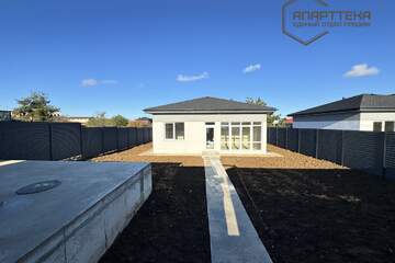 Характеристика дома: монолитно каркасный дом с заполнением газобетоном и утеплением пенополистиролом, выполнена внешняя и внутренняя отделка, одноэтажный дом с тремя раздельными спальнями и большой кухней, высота потолка в черновую 3.2 метра (после стяжки и потолков будет 3 метра), четырехскатная крыша, кровля - мягкая черепица (есть чердачное помещение).