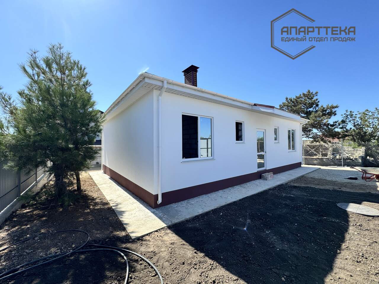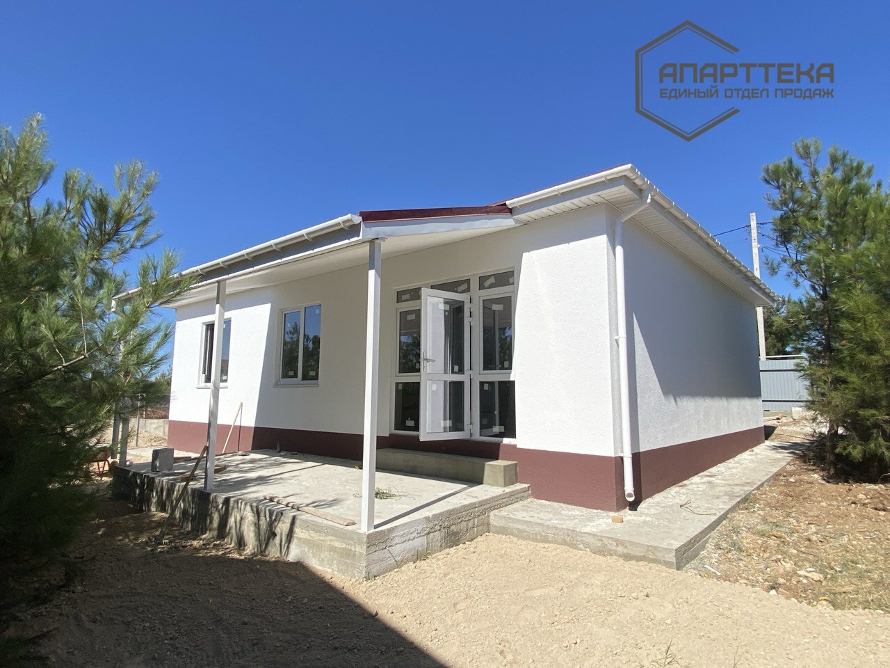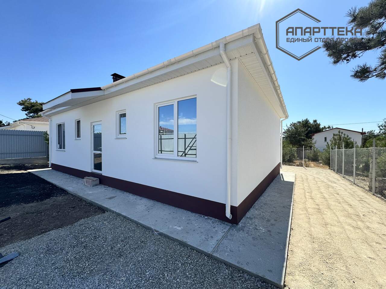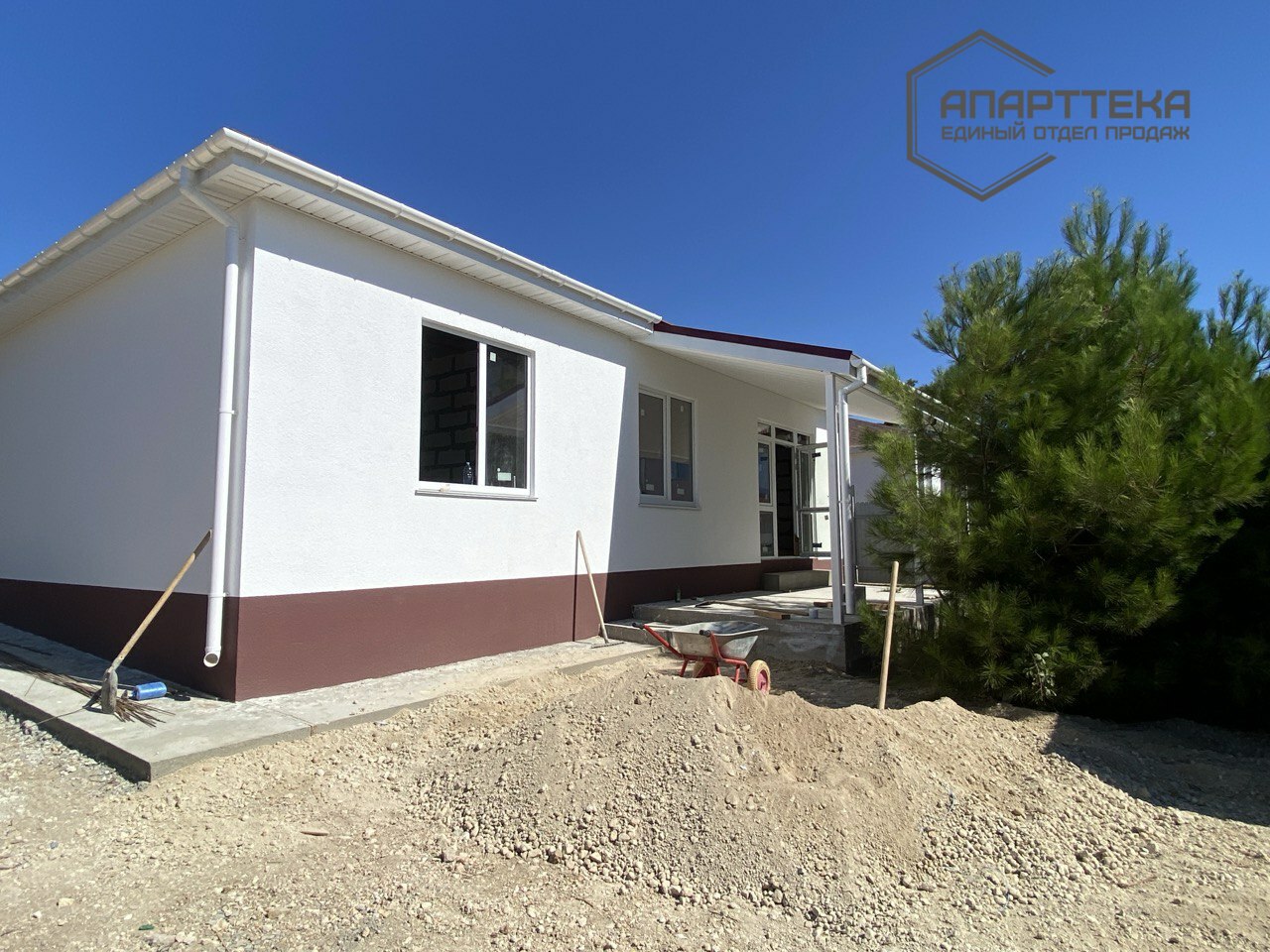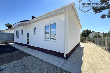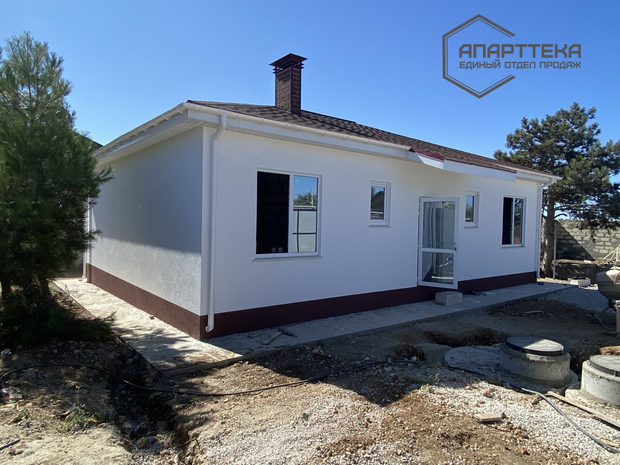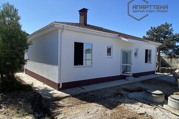 В одноэтажном доме прекрасно расположились: большая светлая кухня-гостиная, санузел, и три небольшие спальни. Из кухни- гостиной предусмотрены выход на крытую террасу, просторная входная группа. Дом построен в соответствии строительных правил и норм одноэтажного домостроения из газобетона опытным застройщиком. Внешняя отделка полностью готова к эксплуатации. Фасад утеплен, армирован , нанесена декоративная штукатурка поддерживающая общую колористику дома. Кровля утеплена мин. ватой 150 мм, выполнена огнебиозащитная обработка деревянного конструктива кровли, мягкая черепица, карнизные свесы подшиты софитами. Заложена система вентиляции. Внутренняя- требует отделки своими силами или можно воспользоваться услугами опытного строителя. Вокруг дома залита отмостка. Участок грамотно распланирован, выполнены земельные работы, залиты системы подпорных стен, произведена гравийная отсыпка парковки для автомобилей. Участок огорожена забором, фасадная часть из металлопрофиля, установлены откатные ворота, калитка. На участке бережно сохранены Крымские сосны.