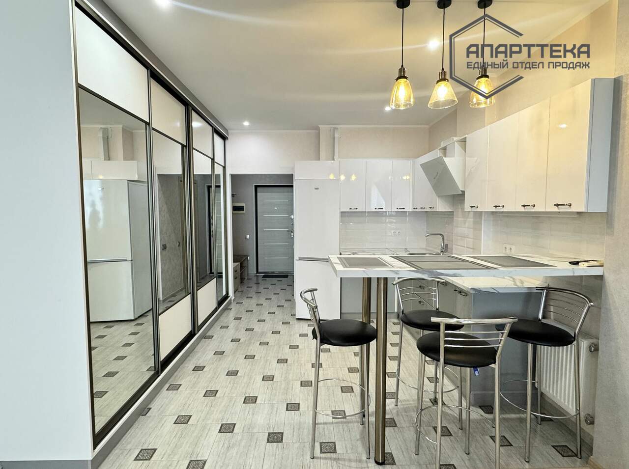 Характеристика квартиры: студия с качественным дизайнерским ремонтом (состояние - как новая, почти не проживали), при ремонте сделана дополнительная шумоизоляция от соседей, выполнено зонирование для кухни/гостинной/спальни, сан узел совмещенный (электрический теплый пол), отопление - в доме крышная котельная (на отопительный сезон). Все фотографии соответствуют.